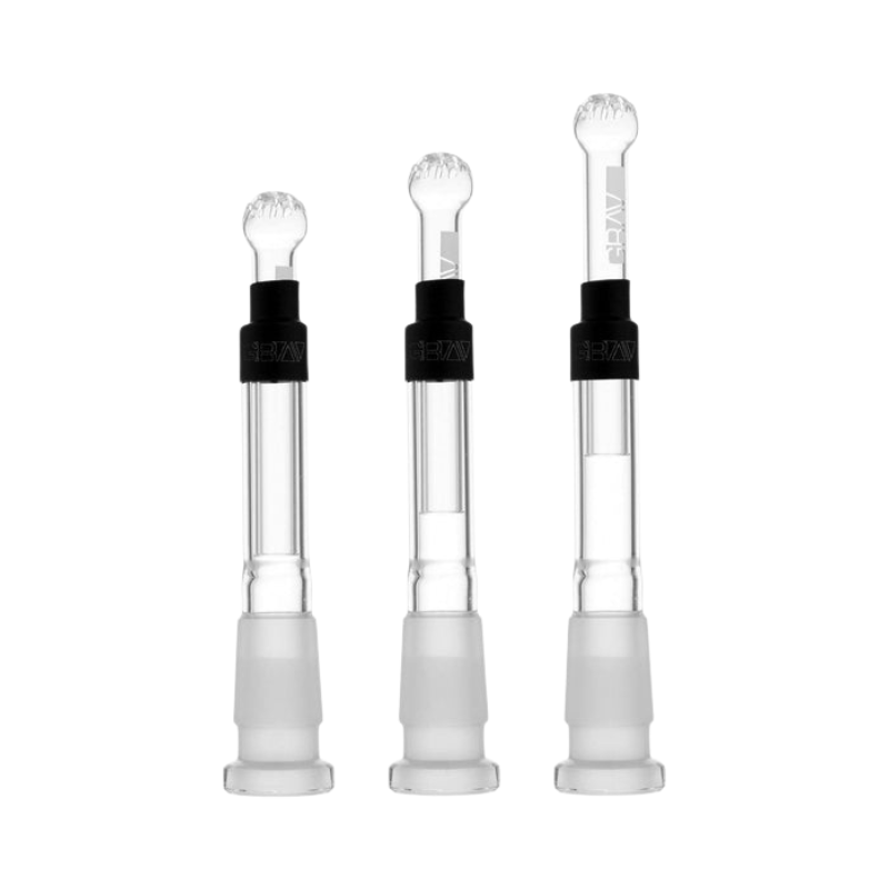 The 14mm GRAV® Adjustable Downstem brings smart engineering to your smoking setup, extending from 10cm to 15cm to match your exact needs. This versatile glass component works with any 14mm cone piece, giving you the freedom to adjust your downstem length based on your water level preferences.