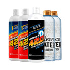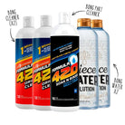The Bong Cleaner Bundle - Large is a comprehensive cleaning bundle designed for heavy bong users who desire a cleaner, more flavourful smoking experience. This powerful kit includes two bottles of fast-acting Formula 420 Original Glass Bong Cleaner, a bottle of Formula 420 Soak-N-Rinse Glass Bong Cleaner and two bottles of Piece Water Solution.