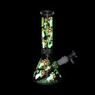 Keep it trippy, weird and wonderful with the orange-coloured Mushroom Glow In The Dark Beaker Bong. It's a medium-sized glass bong standing at 25cm and is made from thick heavy-duty borosilicate glass. It's peppered with out-of-this-world orange glow in the dark mushroom graphics from the top of the neck down to the beaker base chamber.