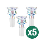 The Higher Concepts Glass Cone Piece (5 Pack) is a wickedly cheap bundle featuring five cone pieces. This bowl is a wide, curved and colourful male glass cone piece with plenty of volume to pack your favourite herbs for multiple rips. It is exclusive to our premium Higher Concepts range. The hourglass shape adds a touch of class, style and beauty to your bong while making it a pleasure to hold, use and remove.