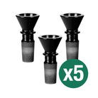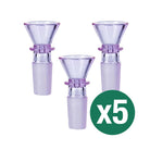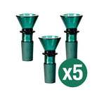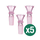 Enjoy quality rips and easy handling with the Ribbed Glass Cone Piece 14mm (5 Pack). The male funnel-shape cone piece has a deep and spacious bowl for you to pack plenty of your favourite herbs for you and your friends. The ribbed maria style grip makes it a pleasure to use and hold so you don't experience any accidental slips or spillages when removing. It's available in a range of colours including clear, pink, purple, black and teal. The 14mm male cone piece will fit any bong, rig or downstem with a 14mm female joint.