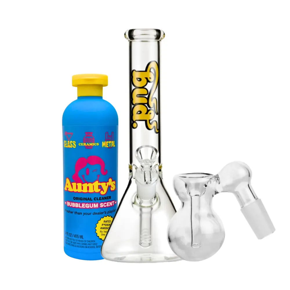 Bud Beaker Bong & Aunty's Cleaner Bundle - Clear