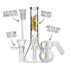 Dive into a world of smooth, satisfying hits with the Bud Beaker Bong Bundle - Medium. This 25cm glass bong, crafted from robust borosilicate, boasts a striking Bud graphic that'll turn heads. The bundle includes extra diffusor downstem, cone piece, and a dazzling iridescent ash catcher for unmatched filtration. Perfect for intermediate users seeking to refine their sessions, this comprehensive kit delivers everything you need for exceptional draws and flavour-rich moments.