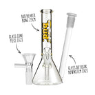 Dive into the world of smooth hits with our Bud Beaker Bong Bundle - Small. This compact 25cm glass bong kit packs a punch, offering everything you need to start your bong journey. The beaker bong bundle is crafted from sturdy borosilicate glass, includes an extra two cone pieces and downstems and is your ticket to cool, filtered draws. Perfect for beginners and seasoned users alike, this bong kit ensures you're always ready for a quality session.