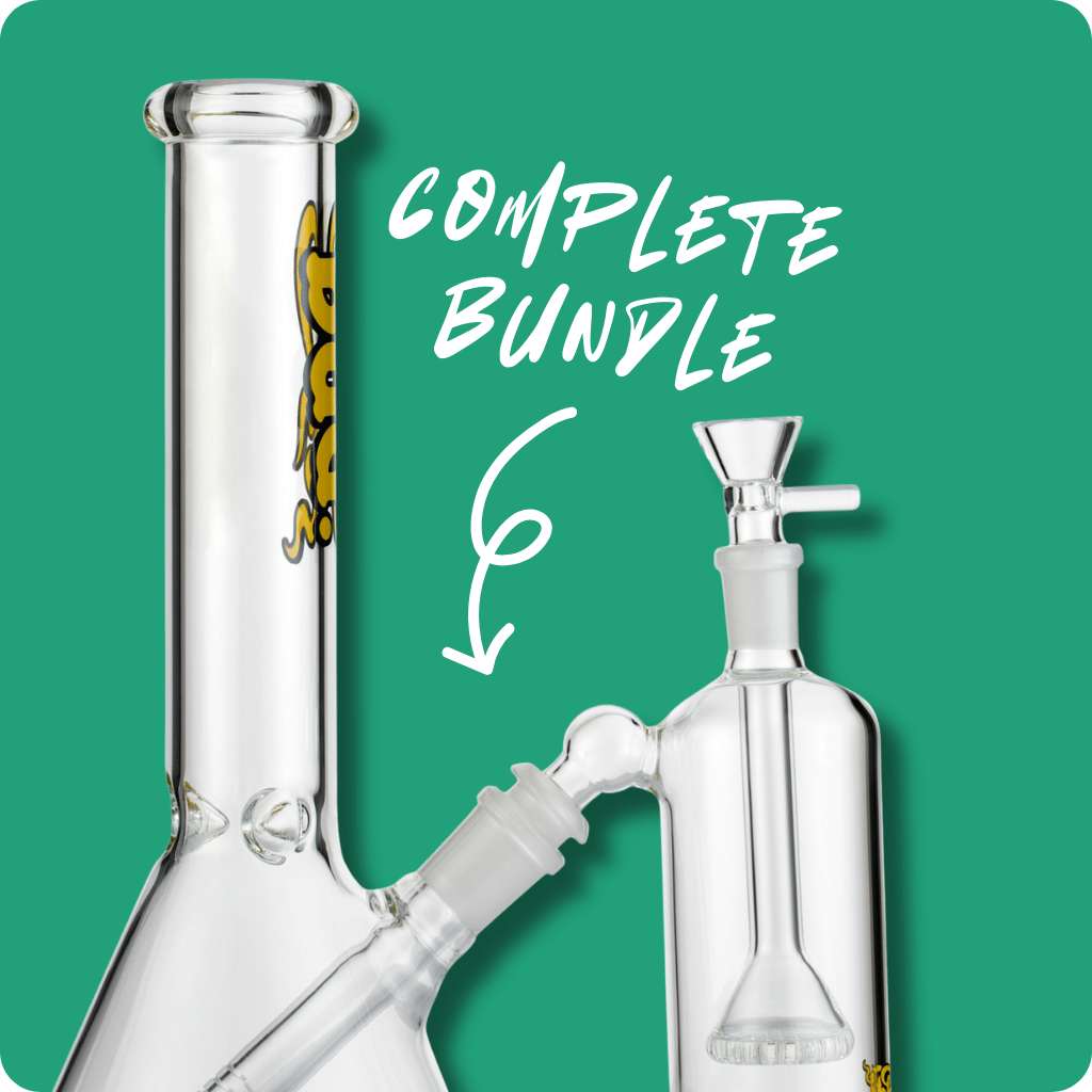 Filter, cool and enhance every draw with the small Bud Beaker Bong Bundle. Crafted from premium borosilicate glass, this sleek beaker bong bundle delivers smooth, flavourful hits that’ll transform your cannabis sessions. Packed with premium accessories including a 14mm Glass Diffusor Downstem, Tab Handle Glass Cone Piece and a game-changing Bud Showerhead Ash Catcher, this bundle promises unparalleled smoke quality.