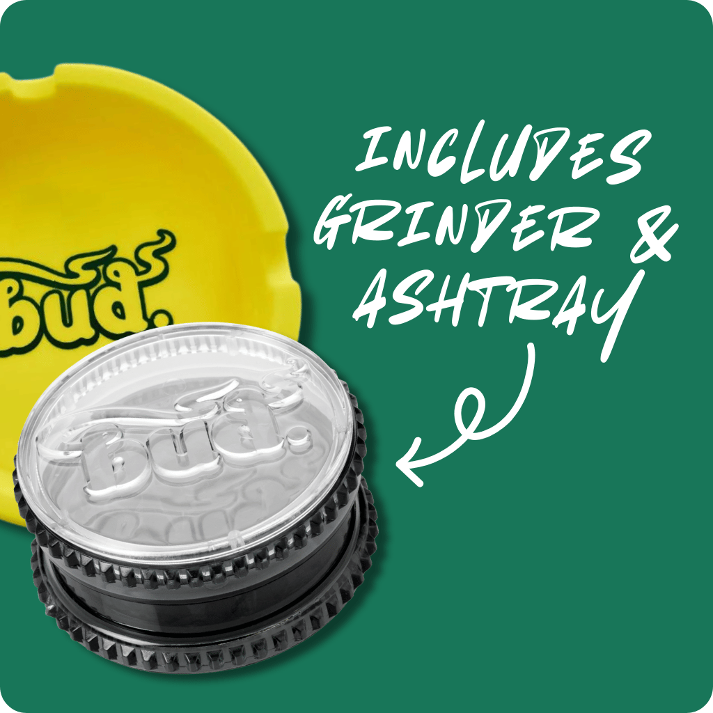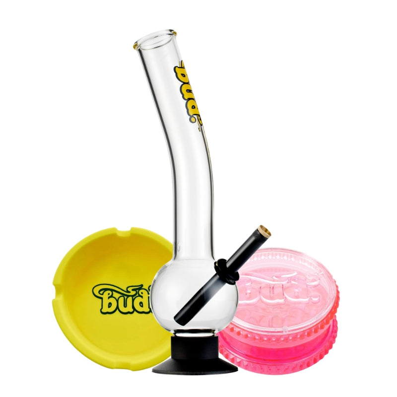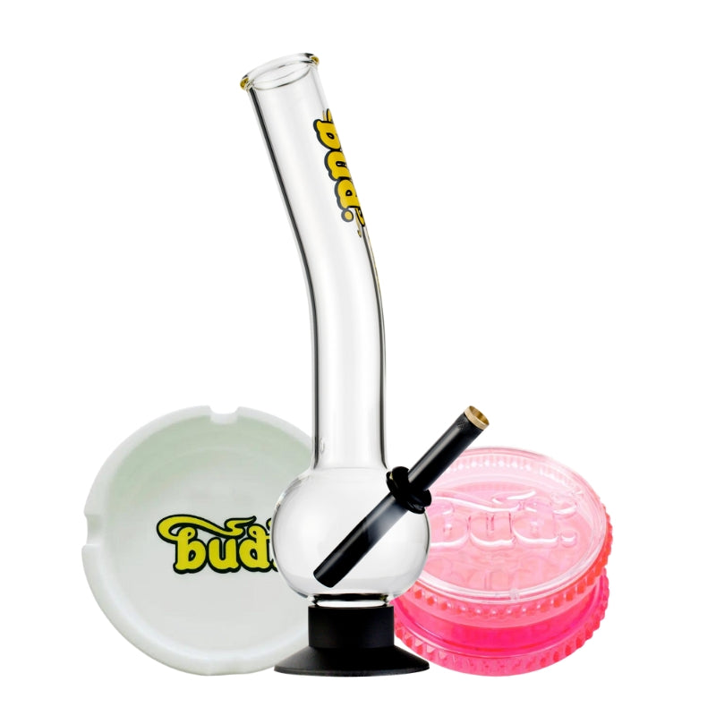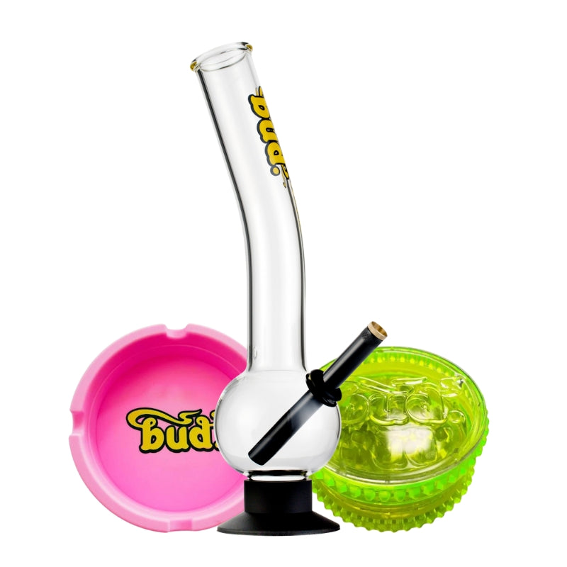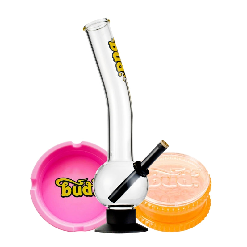 The Bud Bent Bubble Bong Bundle has everything you need for the perfect smoke. This ultimate glass bong kit features a 36cm Bud Bent Bubble Bong, delivering smooth hits every time. Complete with a versatile Bud Silicone Ashtray and a 2-Part Bud Acrylic Weed Grinder, this bong bundle offers unbeatable value. Choose your favourite colours and get ready for an unparalleled smoking session. Don't miss out on this top-notch bong kit - perfect for both beginners and seasoned smokers!