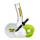 Discover pure smoking pleasure with the Bud Double Bubble Bong Bundle. This top-notch glass bong kit delivers incredibly smooth hits through its innovative double bubble design. Crafted from borosilicate glass, this Aussie favourite guarantees outstanding performance. Standing at 25cm, this premium bong bundle includes a colourful silicone ashtray and 2-part acrylic grinder. Choose from vibrant colours to customise your setup. Upgrade your setup with this unbeatable bong bundle today!