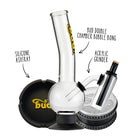 Discover the ultimate smoking companion with our Bud Double Chamber Bubble Bong Bundle. This premium glass bong kit features a 29cm tall double chamber design for exceptionally smooth hits. The bundle includes a versatile silicone ashtray and a 2-part acrylic grinder, available in vibrant colour options. Crafted from durable 4mm borosilicate glass, this bong bundle offers unmatched value and performance for both novice and seasoned cannabis users in Australia.