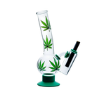 Made from durable borosilicate glass and wrapped in vibrant green weed leaf decals, this setup cools and filters your smoke twice before it reaches your lips. The rubber base keeps it sturdy, while the metal stem and brass bonza cone bring that authentic Aussie functionality you love.