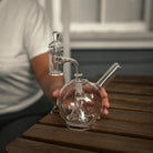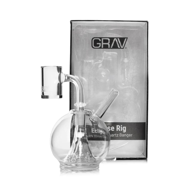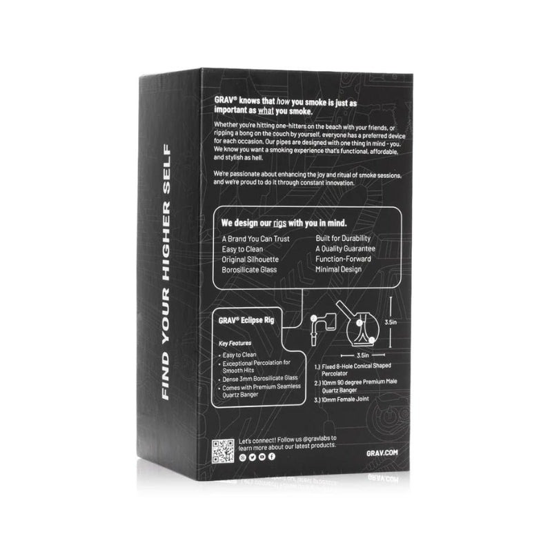 The GRAV Eclipse Dab Rig is a petite, easy-to-carry apparatus featuring an enchanting 8-hole cone-shaped perc that transforms vapor into twirling celestial bodies. Its globe-like structure is effortless to grasp, yet it remains stable when placed on a surface. This rig comes with a brief mouthpiece designed to provide rich, tasteful hits even with the gentlest breath intake. It also includes a Long Neck Quartz Banger to keep the heat at bay from the rig itself.