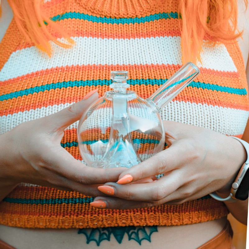 The GRAV Globe Bubbler Bong 11cm serves as your personal, portable universe of illumination and crystal-clear glass, crafted to transport you beyond the confines of our earthly realm. Encased within this spherical wonder, a ten-orifice cone-shaped perc channels smoke via water for cooling. Behold as smoke whirls around akin to a snowstorm in a globe, only to be cleared with a single hearty draw. The inhalations are smooth and packed with flavor, irrespective of whether you choose to stick with buds or opt for a 14mm banger to embark on a dabbing adventure. So, shall we set off on this global expedition? Rest assured, there's no baggage check.