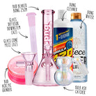 Experience elevated smoking sessions with the Pink Bud Beaker Bong 25cm Bundle - Extra Large. Crafted from durable borosilicate glass, this sleek pink bong features a captivating Bud graphic for added style. Enjoy smooth hits with the included pink Glass Diffusor Downstem 14mm and Tab Handle Glass Cone Piece 14mm. Enhance taste and flavour with the iridescent Bulb Ash Catcher. Keep your bong pristine with Formula 420 - Original Glass Bong Cleaner (355ml) and Piece Water Solution - All Natural Bong Water & Cleaner Alternative (355ml). Perfectly grind your cannabis with the pink Bud 2-Part Acrylic Grinder 50mm. Elevate your cannabis sessions with this premium bundle!