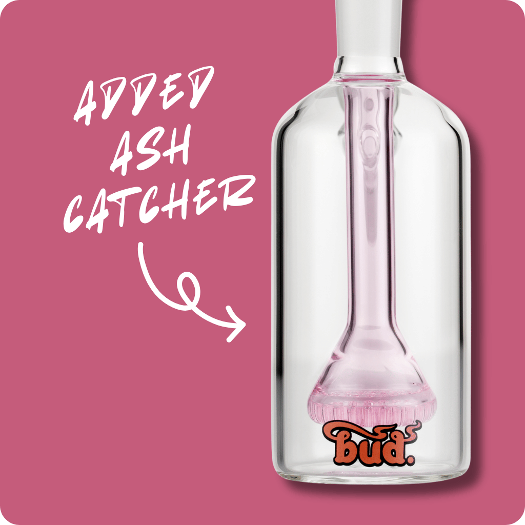 The Pink Bud Beaker Bong 25cm Bundle - Small is the ultimate choice for intermediate bong enthusiasts. Expertly crafted from durable borosilicate glass, this sleek pink bong features a captivating Bud graphic that adds a stylish touch to your smoking experience. The bundle includes a pink Bud Beaker Bong along with a matching pink Bud Showerhead Ash Catcher 14mm that will enhance the flavour of your smoke. Elevate your cannabis sessions with this premium bundle today!