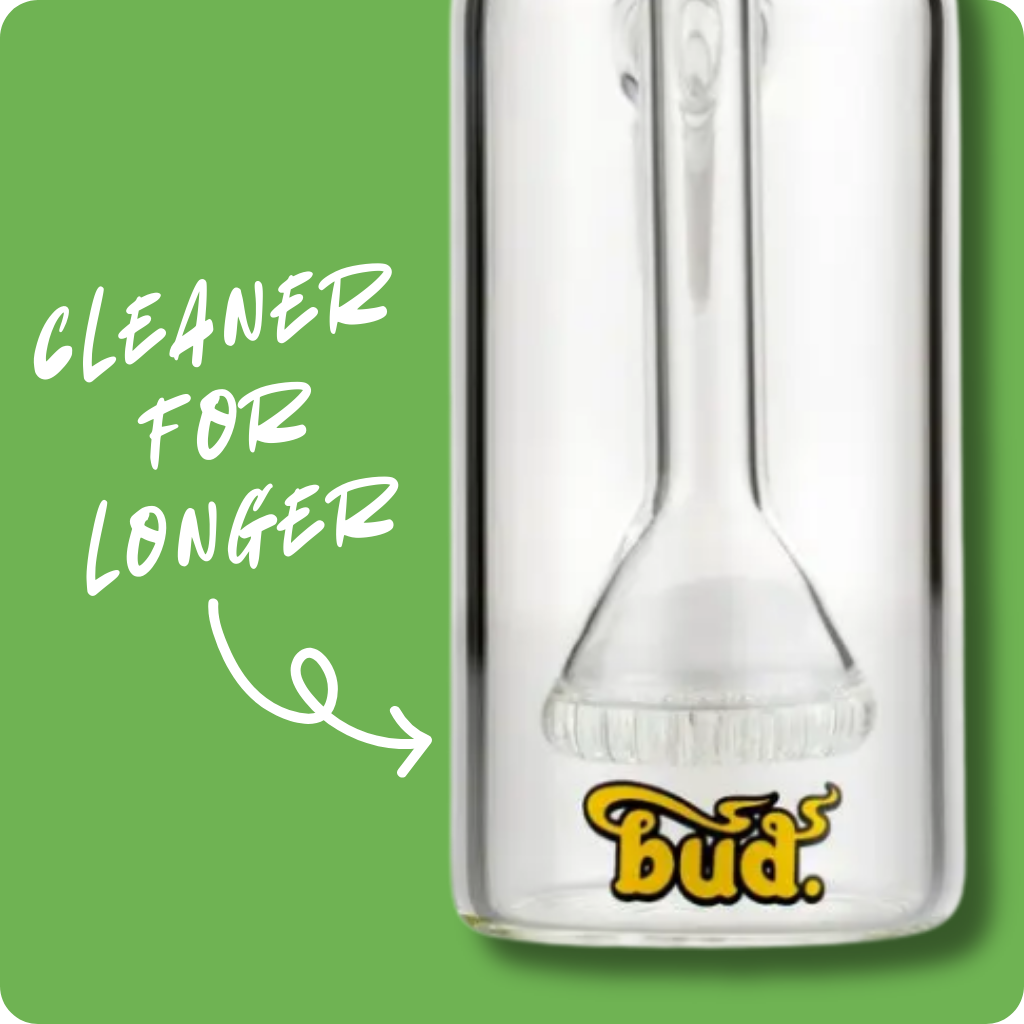 Elevate your bong experience with our Bud Showerhead Ash Catcher. This top-notch ash catcher keeps your hits smooth and clean, filtering out debris for pure, velvety smoke. Crafted from sturdy borosilicate glass, it's a compact 12cm tall and fits 14mm female joints. The innovative showerhead percolator cools and filters smoke brilliantly. Choose from clear, pink or teal - all sporting our funky Bud logo. Pair it with your favourite bong for a killer setup.