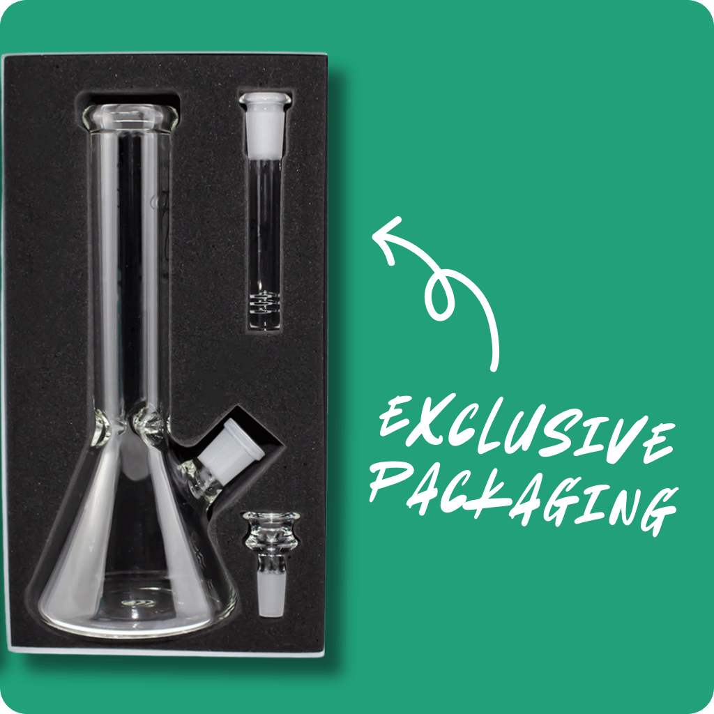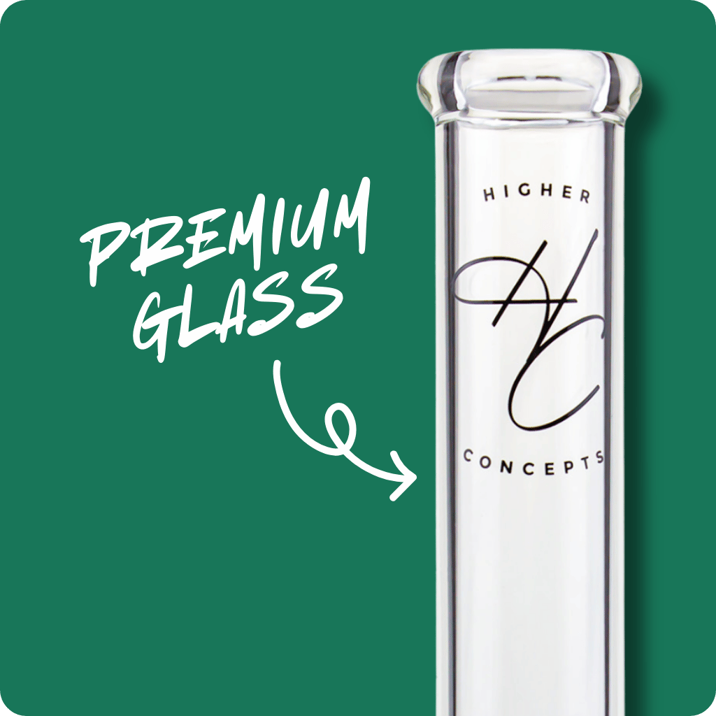 The Higher Concepts Beaker Bong is a premium glass bong crafted from thick borosilicate glass. This 25cm beaker bong features a comfy mouthpiece and three ice notches for smooth, cool hits. The beaker base provides stability and optimal water capacity for big draws. It comes with a glass cone piece and diffusor downstem, ensuring excellent filtration and flavour. Available exclusively at Glass Bongs Australia, this bong arrives in a protective hard case box, safeguarding your investment.