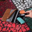 The bottom area of the grinder is equally impressive, featuring an aluminium scraper tool adorned with the iconic GRAV emblem. This handy tool has a curved edge that aligns perfectly with the grinder's internal curve, allowing you to easily collect every last bit of your ground herb or weed.