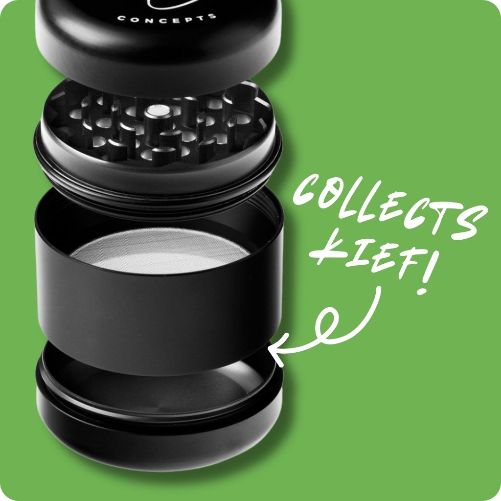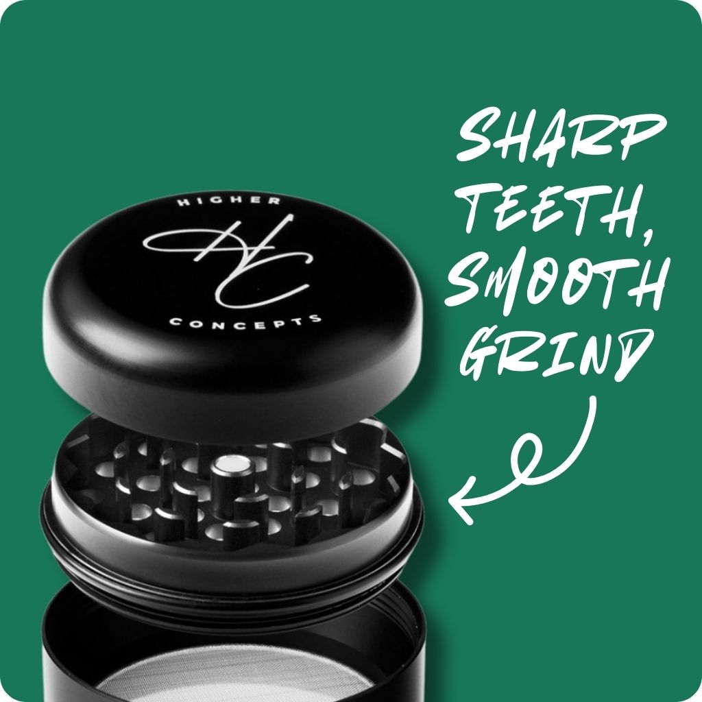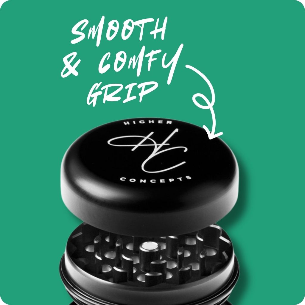 Add elegance to your grind with the Higher Concepts 4-Part Metal Grinder 55mm. This premium Aussie weed grinder boasts durable aluminium construction for effortless shredding. Featuring a magnetic closure, curved teeth, and fine pollen screen, it's the ultimate herb grinder for bong smokers. The sleek matte-black finish and rounded base chamber make collection a breeze. Complete with a pollen scraper and storage bag, it's your go-to portable grinder for smooth, efficient grinding.