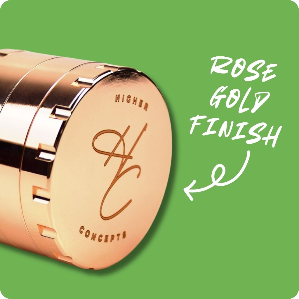Indulge in the Higher Concepts 4-Part Stainless Steel Grinder - Rose Gold, a premium weed grinder that elevates your herb experience. This elegant rose gold herb grinder boasts resin-resistant coating for effortless maintenance. Precision-engineered teeth preserve trichomes, ensuring maximum flavour. With a kief collector for potent smokes and a smooth spinning action, this luxurious grinder transforms your ritual into a moment of blissful nostalgia.