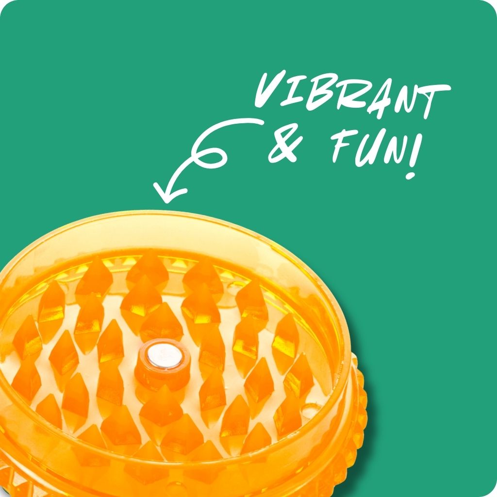 Grind with ease using the orange Bud 2-Part Acrylic Grinder. This compact, lightweight weed grinder boasts a transparent lid and magnetic lock, perfect for Aussie cannabis enthusiasts. Watch your herbs transform through the clear top as sharp diamond teeth create a fine, fluffy blend. The vibrant orange design and embossed Bud logo add a touch of style to your smoke sesh. Ideal for on-the-go use, this herb grinder delivers smooth rotations and a superior grip, ensuring a top-notch grind.