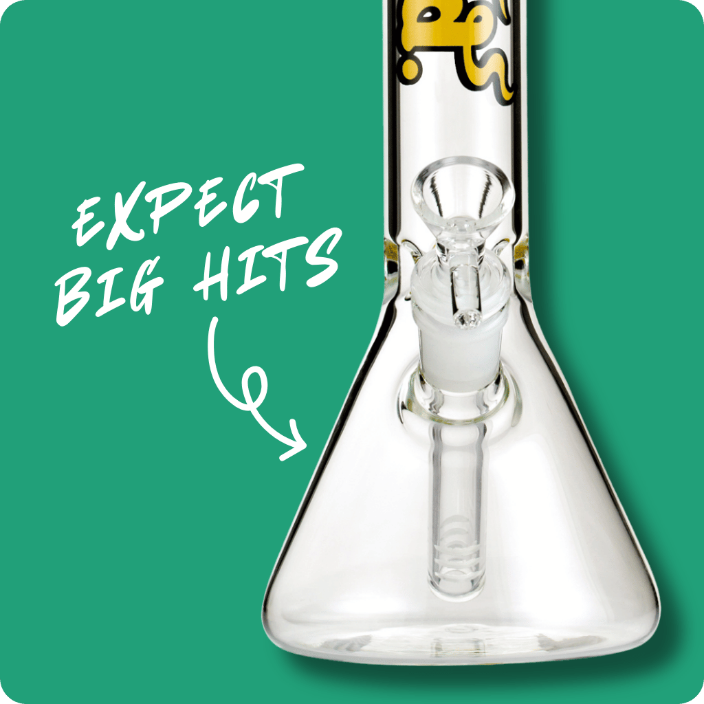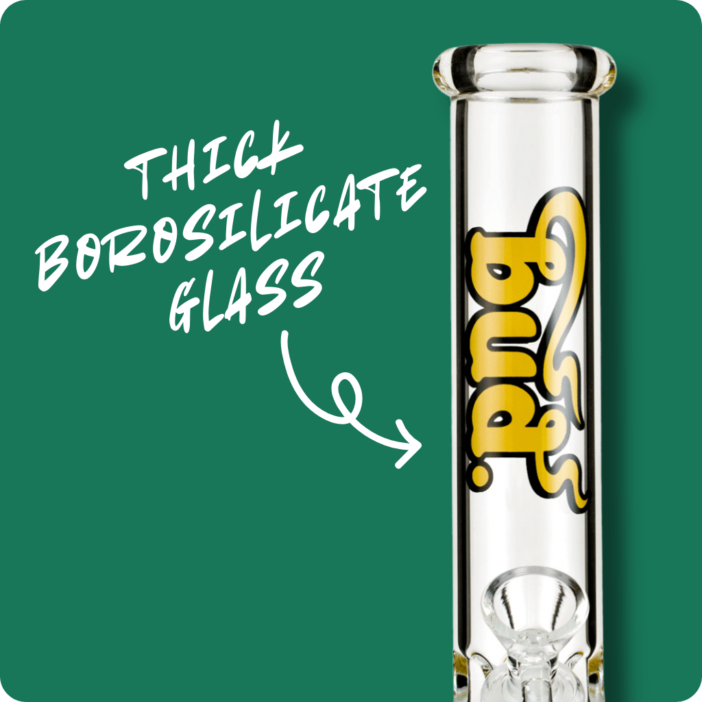 Boost your toking game with the Bud Beaker Bong - our best selling water pipe for Aussie bong lovers. Crafted from tough borosilicate, this glass bong offers mellow rips while enhancing the flavours of your cannabis. Rocking a yellow Bud graphic, a broad mouthpiece and three ice notches, it melds classic design with practical use. It comes with a cone piece and stem and is perfect for both new and experienced users.