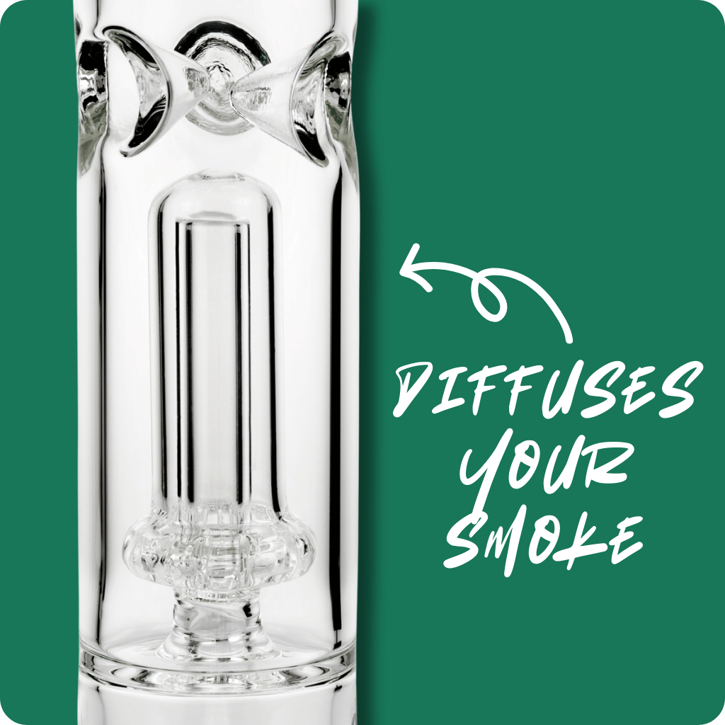 The Bud UFO Percolator Bong will revolutionise your smoking experience. The UFO percolator features multiple holes that maximise smoke filtration, delivering smooth hits. Standing at 30cm tall and crafted from borosilicate glass, this percolator bong boasts a sturdy beaker base and spacious chamber. Three ice notches offer the option of cooler hits, while the striking yellow Bud logo adds a vibrant touch. Includes a diffusor downstem and cone piece, making it ready to use straight away.
