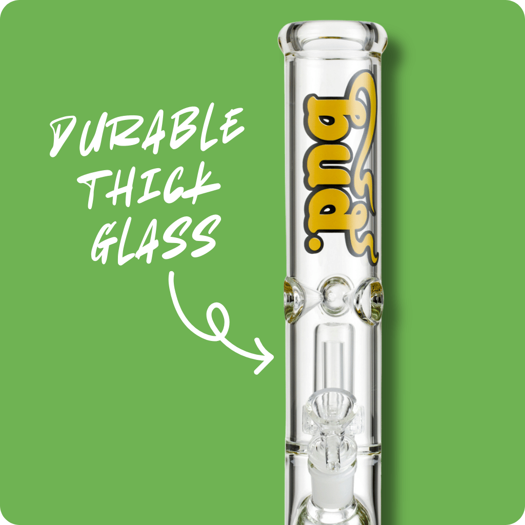 Kick back with the Bud Straight Tube Matrix Percolator Bong for a chill, tastier puff. This glass bong rocks a matrix percolator that cleans the smoke by bubbling it through water giving you cleaner and tastier drags. It features a solid base for stability, a roomy chamber and ice notches to make sure your hits are top-notch. It's got a glass cone piece and diffusor downstem so you're in for nothing but smooth toking. Perfect for new and experienced smokers!
