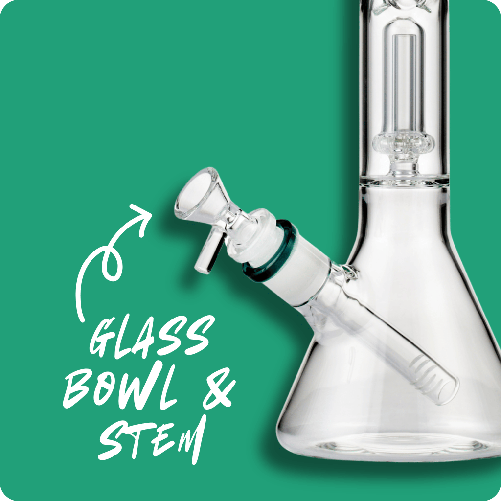 The teal Bud UFO Percolator Bong is a 30cm glass bong that will revolutionise your smoking scene. The star feature is its innovative UFO percolator, packed with multiple holes for superior smoke filtration and diffusion. Crafted from thick borosilicate glass, this percolator bong features a spacious beaker base and three ice notches for extra-cool hits. Complete with a diffusor downstem and cone piece, this bong delivers an unmatched smoking experience.