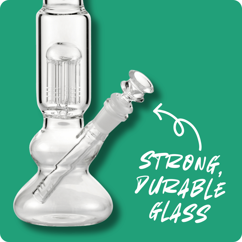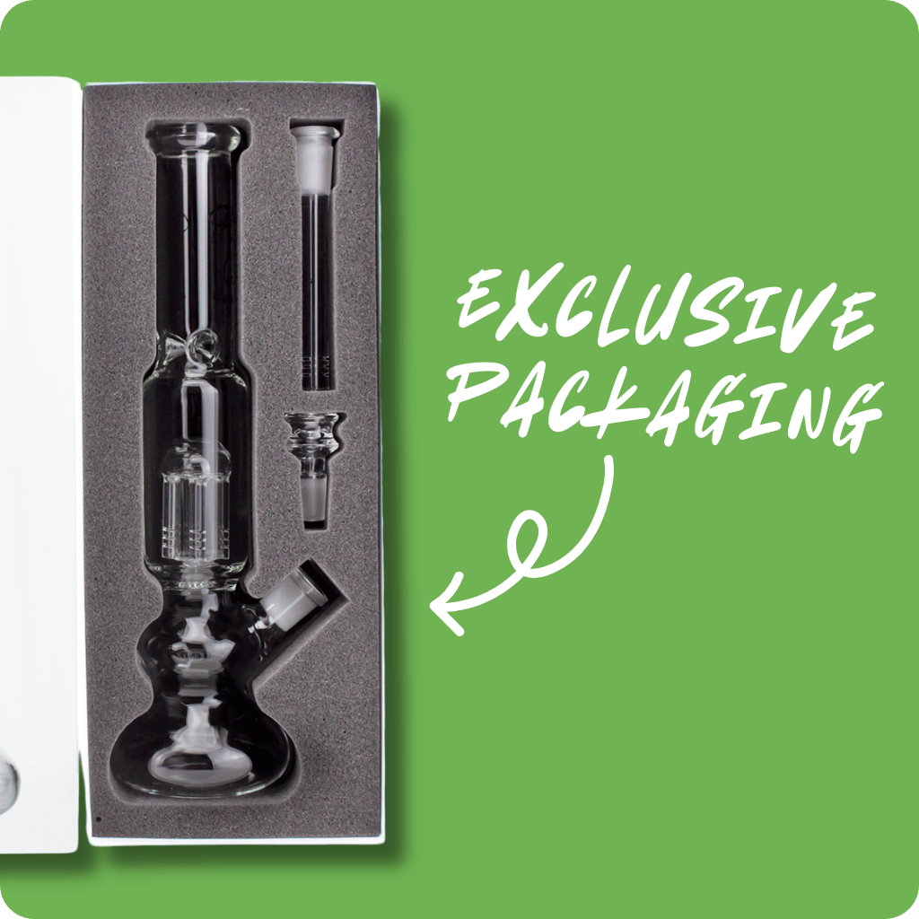 The Higher Concepts Tree Percolator Bong is a premium glass bong crafted from 5mm thick borosilicate glass. This 33cm percolator bong features three ice notches and a six-arm tree percolator for superior filtration, ensuring velvety hits every time. Its solid mouthpiece and stable curvy chamber allow for comfortable, generous pulls. Complete with a matching glass cone piece and diffusor downstem, this bong comes in a protective hard box with foam insert, ready for your next sesh.