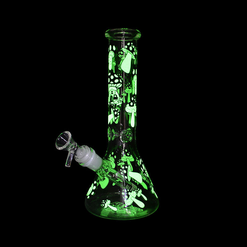 Bud Mushroom Glow In The Dark Beaker Bong 25cm - Black